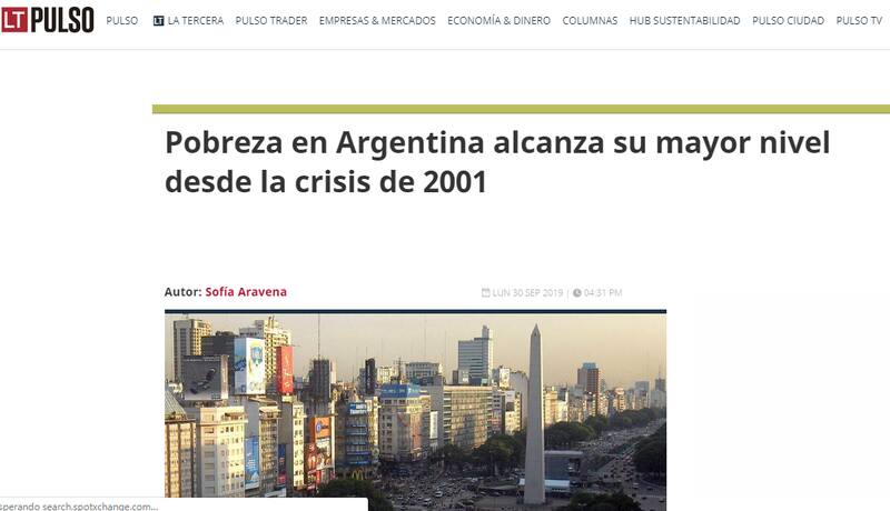 El diario La Tercera de Chile también se hizo eco y destacó que “prácticamente 1 de cada 3 argentinos está actualmente en situación de pobreza , al tiempo que destaca que “la pobreza en Argentina alcanza su mayor nivel desde la crisis de 2001 .
