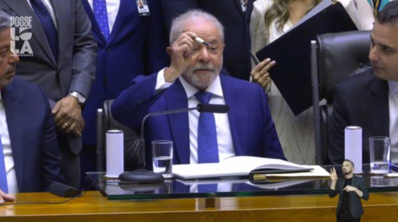 Antes de iniciar su discurso, al firmar el mandato presidencial, Lula rompió con el protocolo y rindió un rápido homenaje a la población de Piauí.