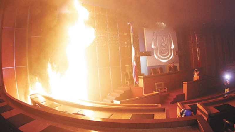 En Chilpancingo, la capital de Guerrero, integrantes de un sindicato de maestros incendiaron el salón de sesiones del Congreso y quemaron varios autos, de acuerdo con testigos y medios locales.