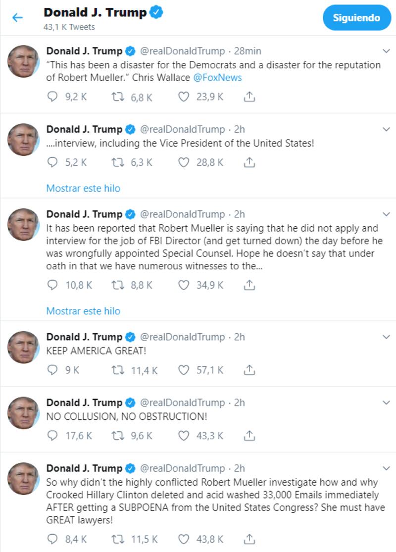 De hecho, el propio Trump emitió nueve tuits sobre el tema en una hora.