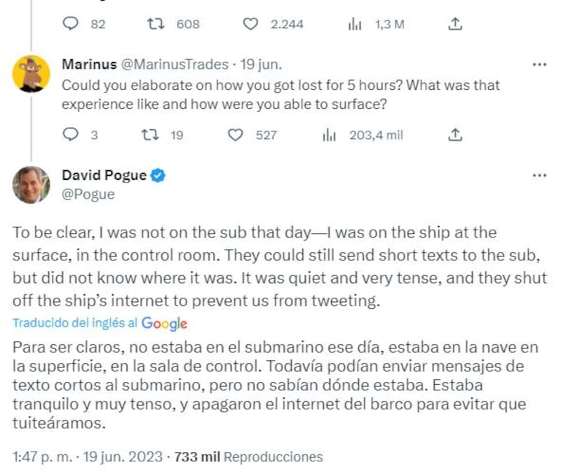 David Pogue, un corresponsal de CBS que probó el sumergible turístico Titan, ahora desaparecido, dijo el martes que, en su experiencia, el barco se perdió por varias horas durante una inmersión.