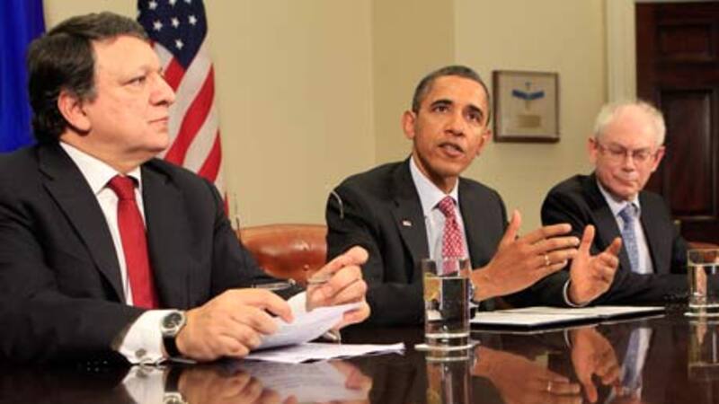 La reunión de hoy con el presidente del Consejo Europeo, Herman Van Rompuy, y el presidente de la Comisión Europea, José Manuel Barroso -en una cumbre anual entre líderes de Washington y Bruselas- le dio la oportunidad a Obama de redoblar la presión sobre los funcionarios europeos para actuar decisivamente para evitar un mayor contagio.