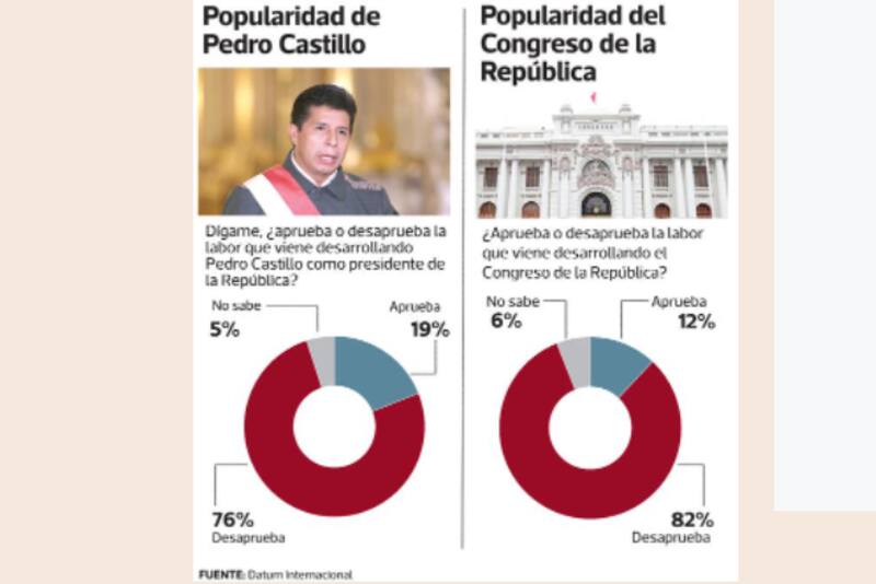 Mientras el presidente Pedro Castillo aún ensaya junto a su gabinete cómo responder frente a la crisis desatada en el país, la popularidad del jefe de Estado continúa en caída.