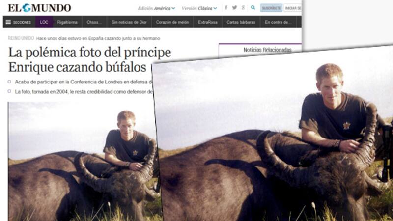 Una foto del príncipe Harry, con rifle en mano, junto a un búfalo muerto, causó un gran dolor de cabeza a la Casa Real británica cuando fue expuesta en la Conferencia de Londres en defensa de la vida silvestre y contra la extinción de especies animales. Cabe aclarar que el hijo de de Gales participaba de la conferencia.