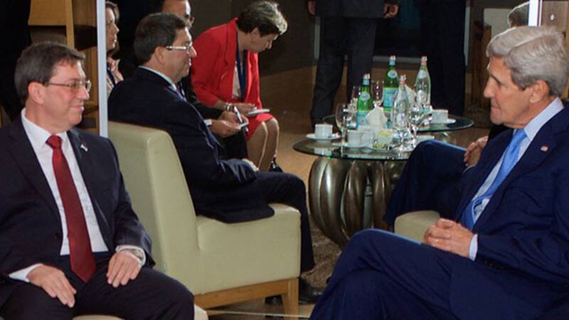 El Secretario de Estado norteamericano, John Kerry, y el canciller cubano, Bruno Rodríguez, se reunieron en el marco de la Cumbre de las Américas en Panamá en la que fue la reunión de mayor nivel entre ambas partes desde los primeros días de la Revolución Cubana, hace más de medio siglo.