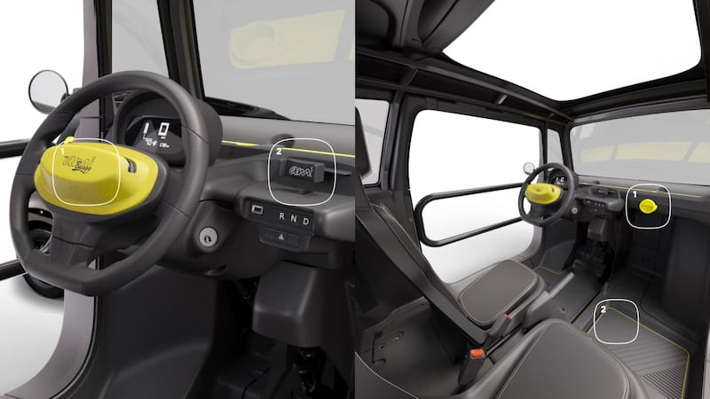 - Diseño modular: inspirado en el mítico Citroën 2CV, permite intercambiar elementos como paragolpes o lunas, reduciendo costes de mantenimiento y facilitando reparaciones DIY.