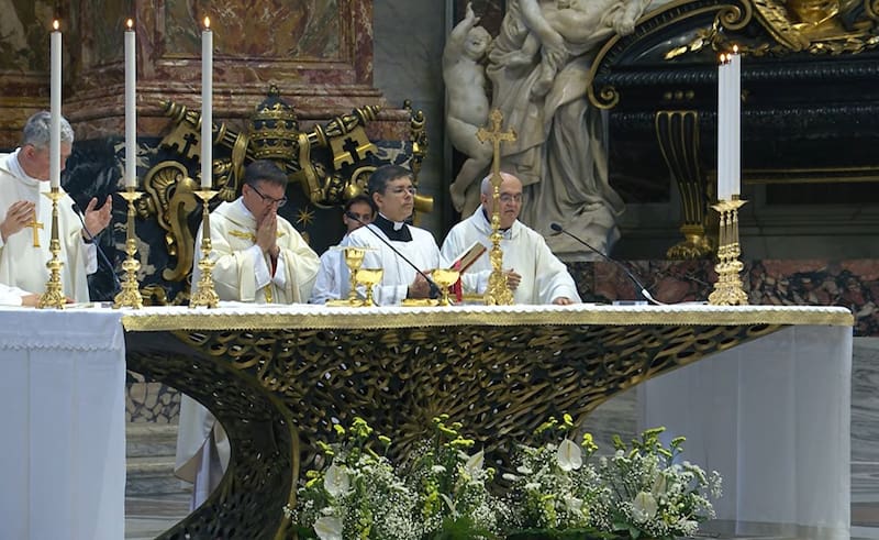 En el interior de la basílica se fueron colocaron los obispos y cardenales, así como también el personal del Vaticano para escuchar la liturgia de la Palabra celebrada por el cardenal camarlengo.