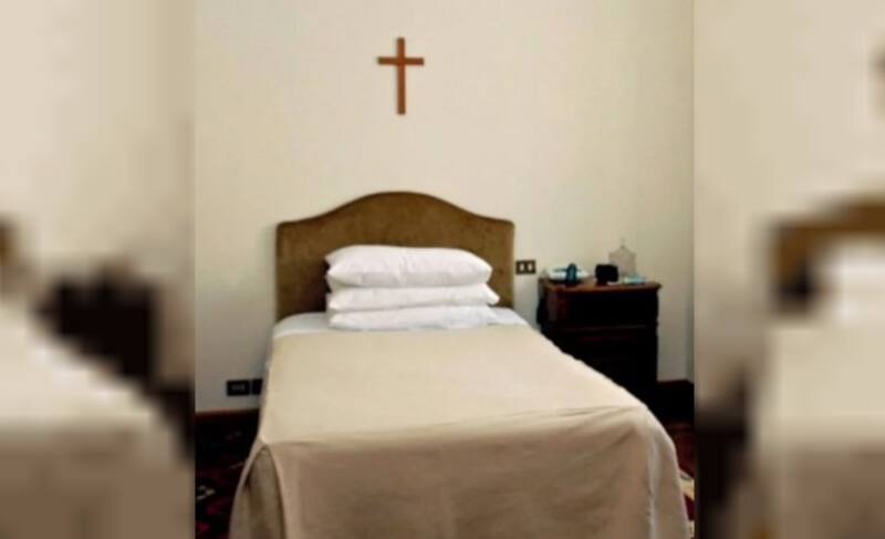 En lugar del Palacio Apostólico con sus salones dorados, Francisco optó por un cuarto sencillo, sin más que una cama individual, un crucifijo y una lámpara de lectura.