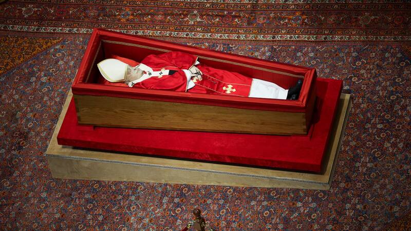 Tras su llegada, el féretro fue colocado, como indican las normas, en la nave central de la basílica de San Pedro, cerca de la tumba del primer apóstol. La regla dice explícitamente que "el ataúd es colocado ante el altar de la Confesión, de cara al pueblo".