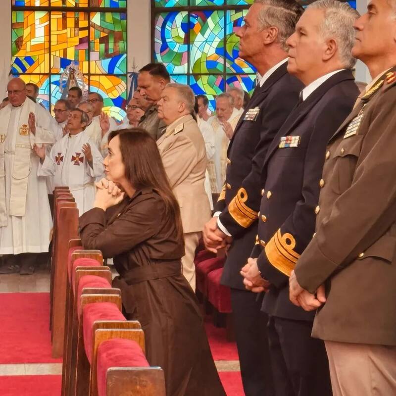 Por su parte, la titular de la Cámara Alta participó esta mañana de la Misa del Obispado Castrense en la Catedral Stella Maris con todos los miembros de las FFAA y Fuerzas Federales, por el fallecimiento del Papa Francisco.