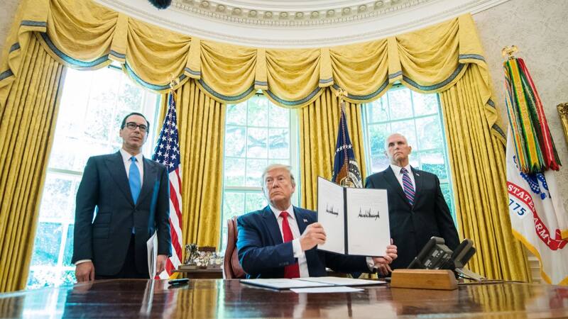 "Seguiremos aumentando la presión sobre Teherán", dijo Trump en la ceremonia de firma en la Oficina Oval a la que asistieron el vicepresidente Mike Pence y el secretario del Tesoro, Steven Mnuchin. "Nunca puede Irán tener un arma nuclear".