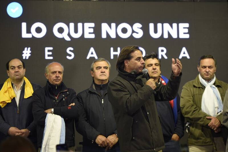 Lacalle Pou, junto a su candidata a vicepresidenta Beatriz Argimon dio un discurso emocionado, disfónico, en el que destacó que "queremos cambiar el país, tenemos el proyecto claro". Señaló que "nunca voy a perder la condición de militante del PN" y en simultáneo aseguró que en Uruguay se instalará "la tolerancia, la pluralidad".