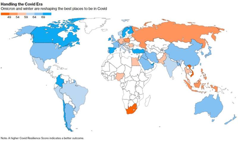 Esto hizo que las 53 economías puntuadas en el Ranking de Resiliencia al Covid de Bloomberg se vuelvan en general más estrictas, con restricciones en el último mes del año para limitar la movilidad de las personas ante el aumento de los casos, desde Londres hasta Sídney.