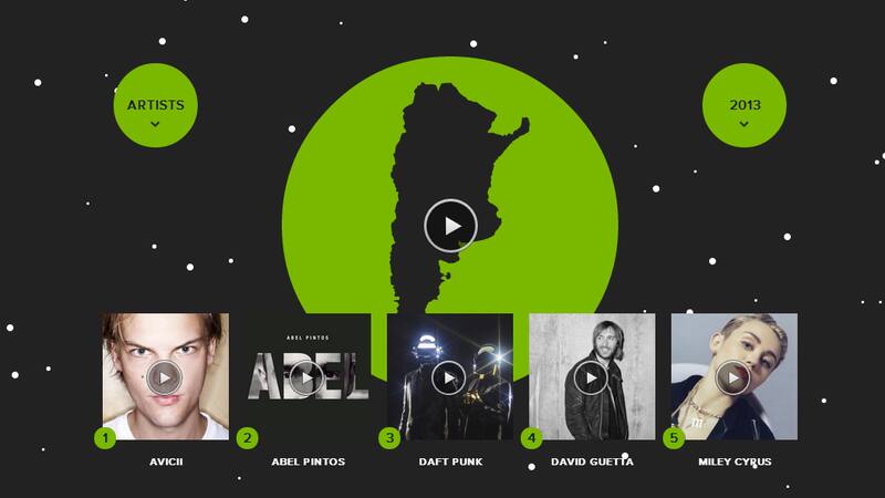 Entre los artistas más escuchados del país se destaca la aparición de los artistas locales Abel Pintos y Soda Stereo dentro de los 10 más reproducidos, ocupando el segundo y décimo puesto respectivamente. El primer lugar está ocupado por Avicii, mientras que el el tercer puesto se ubica Daft Punk, seguido por David Guetta y Miley Cyrus.