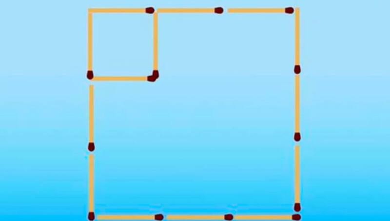 Por lo tanto, debe agregar un fósforo a la columna del cuadrado más grande y luego agregar otro fósforo paralelo al primero. Así, formarás un cuadrado más pequeño y tu objetivo se habrá logrado.