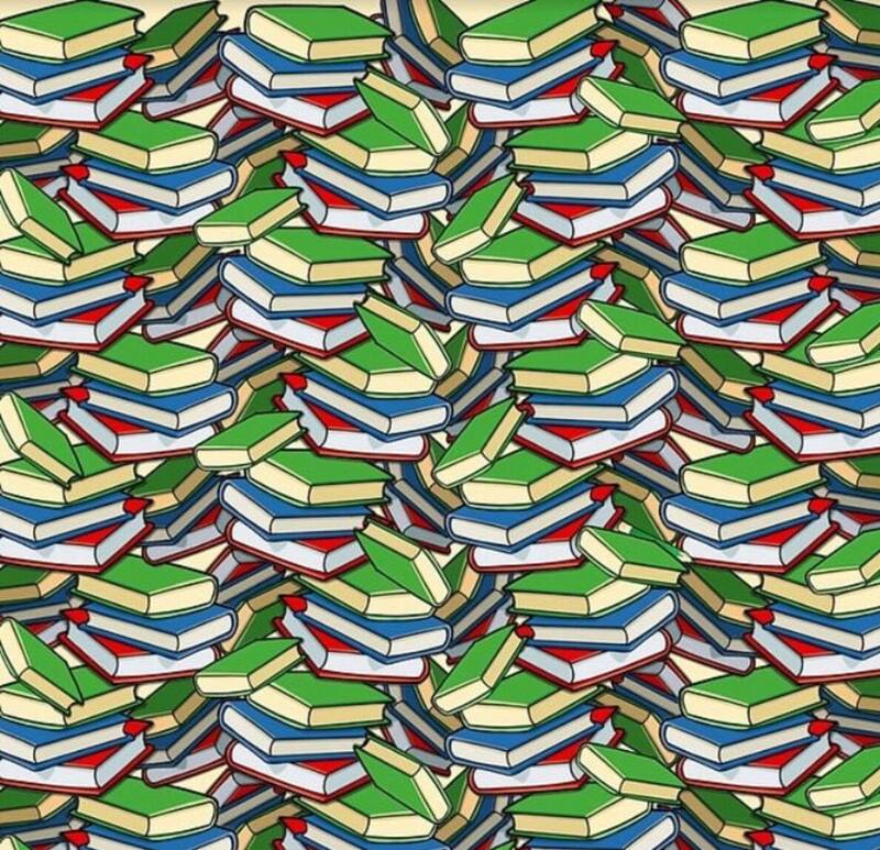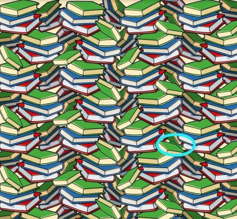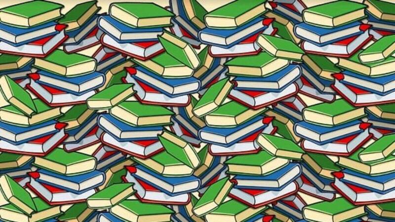 En la siguiente imagen podrás observar muchos libros de distintos colores. El objetivo es poder ubicar el lápiz que se encuentra oculto entre ellos. ¿Podrás hacerlo?