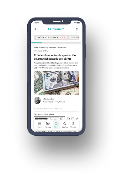 Landing descarga app ¡Llegó la App de El Cronista! Encontrá los mejores análisis financieros y tributarios Sin publicidad Personalizá tu experiencia de lectura Recibí alertas de tus cotizaciones favoritas y ¡más! ¡Descargá la app en tu celular! Disponible para Android y IOS