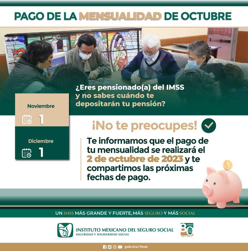 Cobro de pensión IMSS de noviembre: miércoles 1 de dicho mes