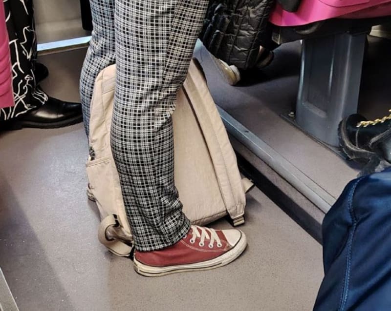 Llevar la mochila en los hombros o en el pecho dificulta el movimiento y puede generar molestias en espacios reducidos, mientras que colocarla en los compartimentos diseñados garantiza comodidad y practicidad, siguiendo prácticas comunes en sistemas de transporte público de todo el mundo.