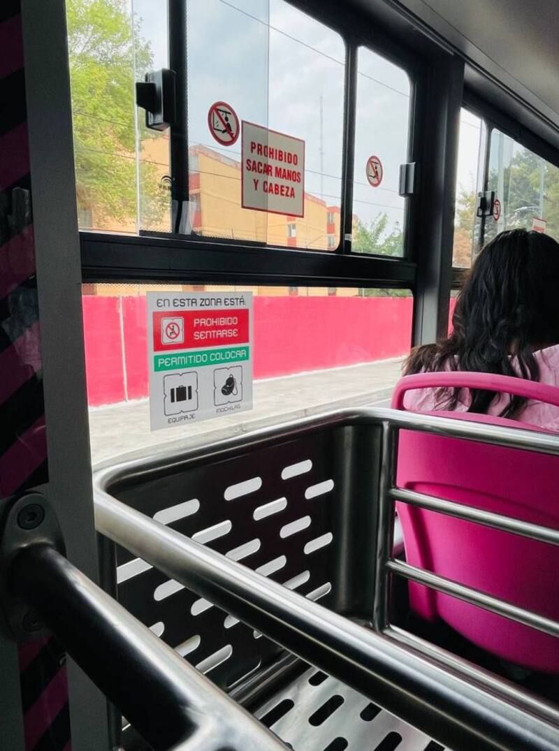 "Nuestras unidades cuentan con espacios designados para mochilas, maletas o bolsas. Te invitamos a utilizarlos correctamente", informó Metrobús CDMX.