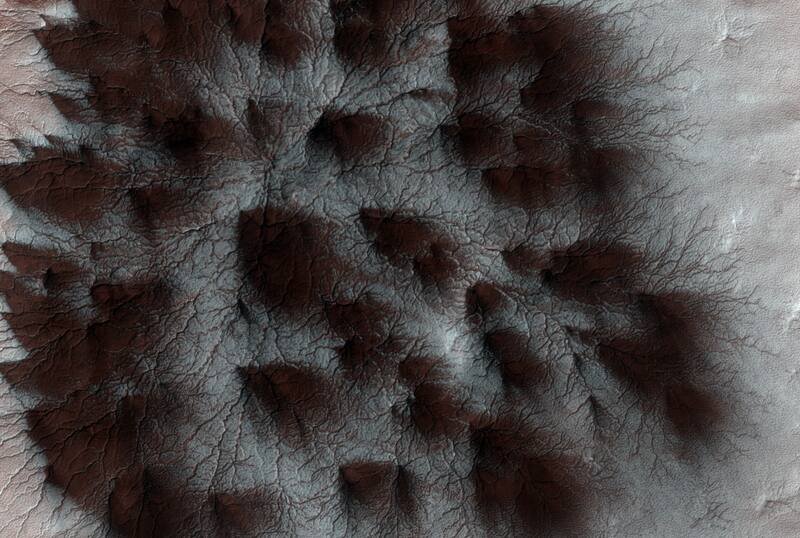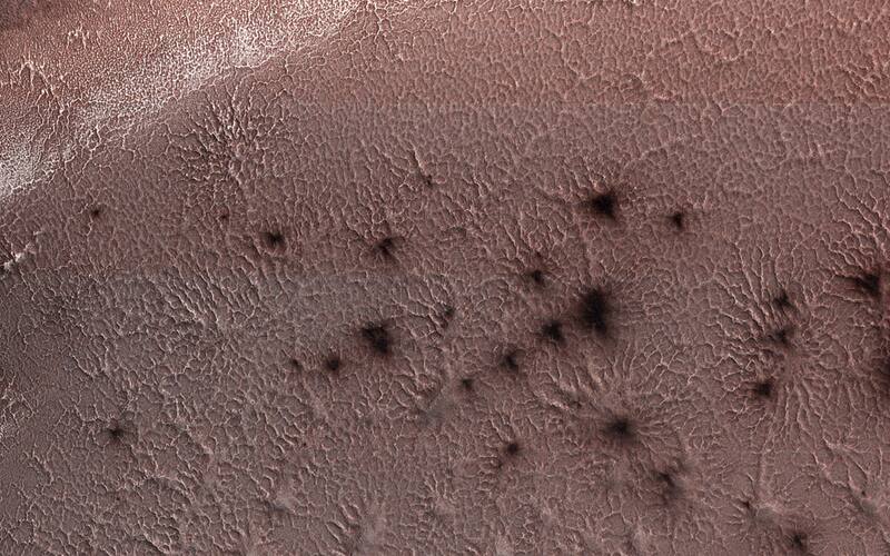 Y es que lejos están de ser insectos. Mucho más de tener vida. Las arañas del polo sur de Marte son en realidad producto de los ciclos estacionales de ese planeta. De acuerdo con el sitio oficial de la NASA, Administración Nacional de Aeronáutica y el Espacio,al llegar la primavera marciana, después de los largos meses de oscuridad plena de invierno, el sol calienta las capas de dióxido de carbono de la superficie.