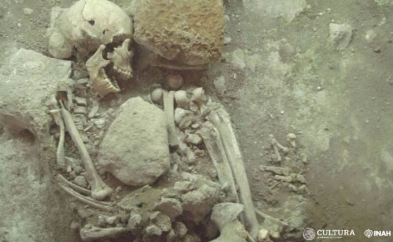 El INAH informó que se encontraron dos individuos junto a la mujer, uno de los cuales parece ser un niño y el otro un "subadulto".