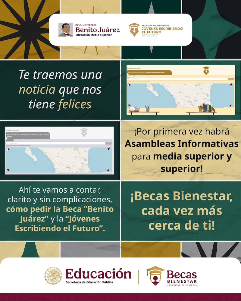 Estas reuniones tienen como propósito acercar información clara y directa sobre los procesos, requisitos y beneficios de la Beca Universal de Educación Media Superior Benito Juárez y la Beca Jóvenes Escribiendo el Futuro y Beca Media Superior, dos de los principales programas de apoyo económico para la comunidad estudiantil del país.