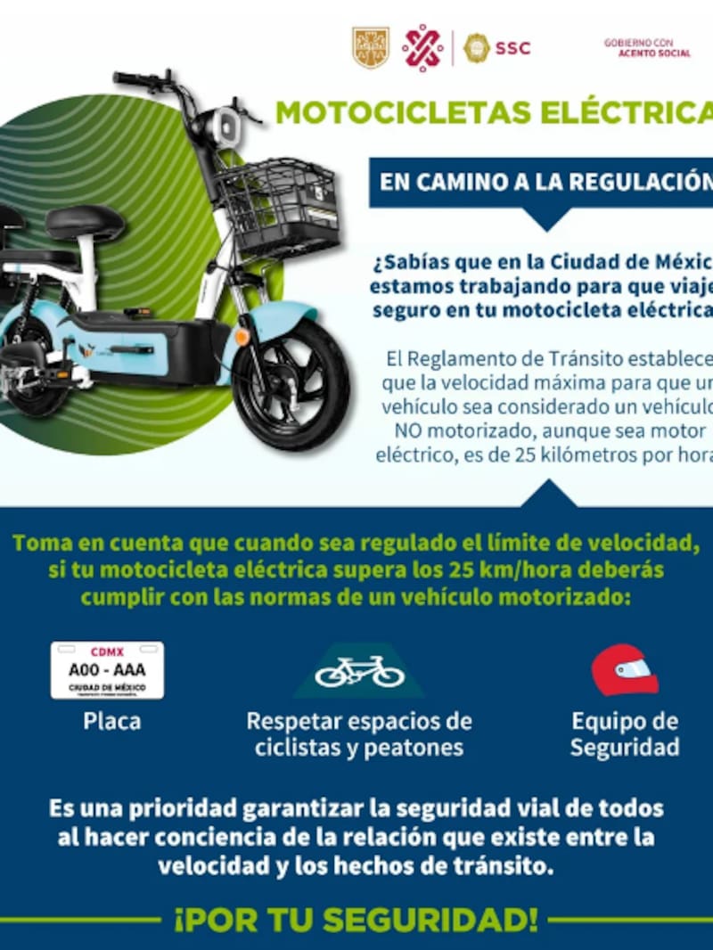 Si bien el secretario de Movilidad de la Ciudad de México (CDMX), Andrés Lajous Loaeza, se encargó de difundir la intención de regular la circulación de las "motocicletas eléctricas", aún se desconoce la fecha de implementación.
