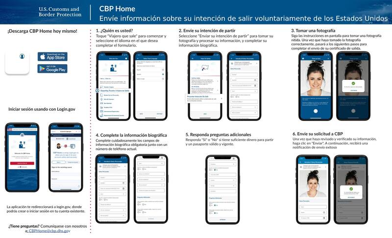 Con la CBP Home, todo inmigrante susceptible a ser deportado por el Gobierno de los Estados Unidos cuenta con esta app para tomar la iniciativa de ser deportado de forma voluntaria. "Los extranjeros ahora pueden notificar al gobierno de EE. UU. su intención de abandonar el país", informó U.S. Customs and Border Protection.
