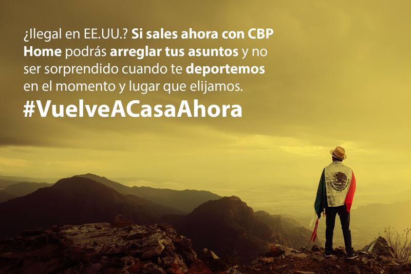 Así promociona esta herramienta la Embajada de Estados Unidos en México. "¿Ilegal en EE.UU.? Si sales ahora con CBP Home podrás arreglar tus asuntos y no ser sorprendido cuando de deportemos en el momento y lugar que elijamos. ¡Vuelve a casa ahora!