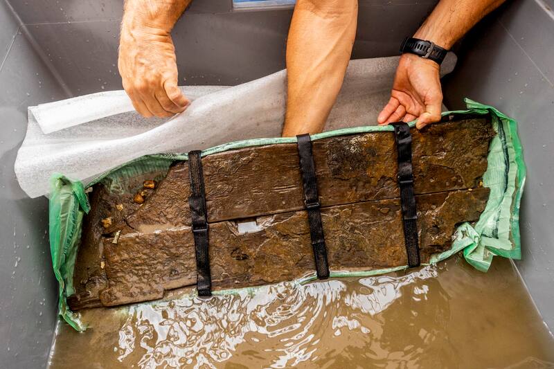 Tras esta primera porción, los arqueólogos procederán a extraer las cuadernas, piezas de madera trasversales que forman el esqueleto del barco, antes de proceder con el resto de porciones.