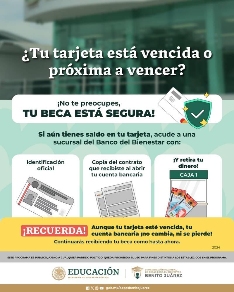 "Aunque tu tarjeta esté vencida, tu cuenta bancaria no cambia, ni se pierde. Continuarás recibiendo tu beca como hasta ahora", remarcó Becas Benito Juárez desde la Secretaría de Educación.