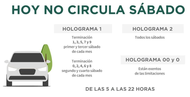 En cuanto al sábado 29 de noviembre, por tratarse del quinto sábado del mes, únicamente tendrán restricción los vehículos con holograma 2, sin importar el número de placa.