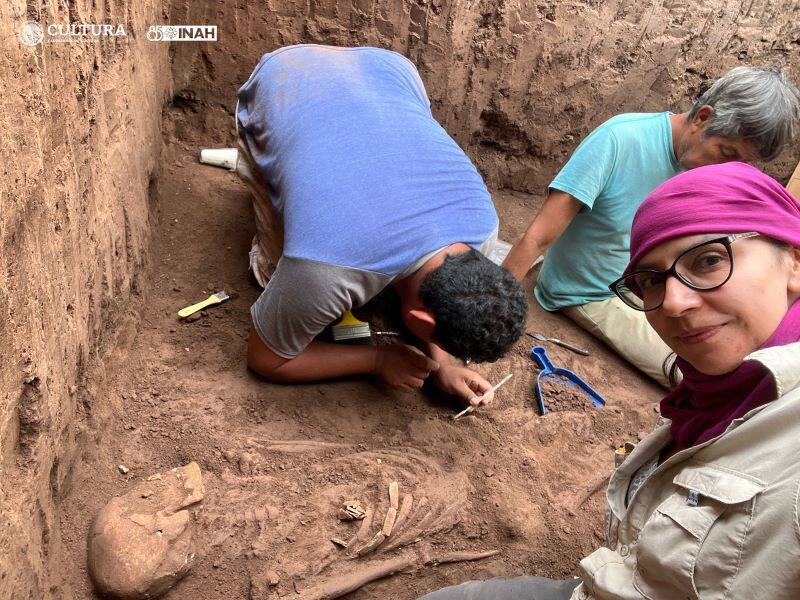 Según la arqueóloga Claudia Servín, el sepulcro albergaba un esqueleto completo acompañado de otros huesos dispuestos de forma deliberada.