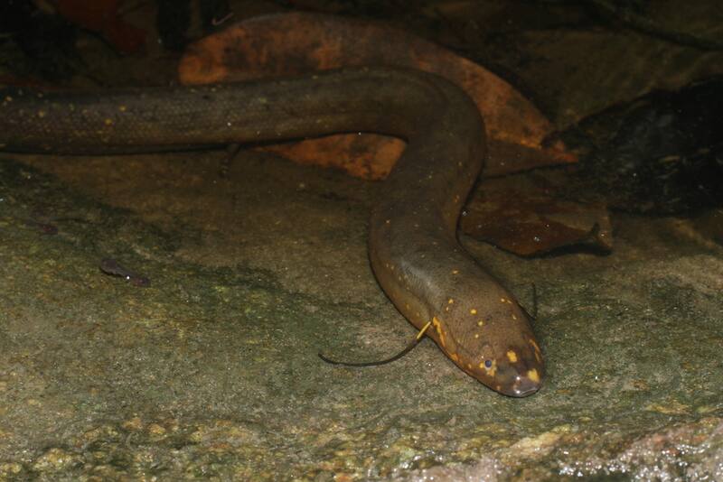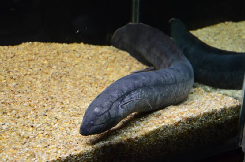 - Cuerpo alargado, similar al de una anguila, que puede alcanzar hasta 125 centímetros de longitud.