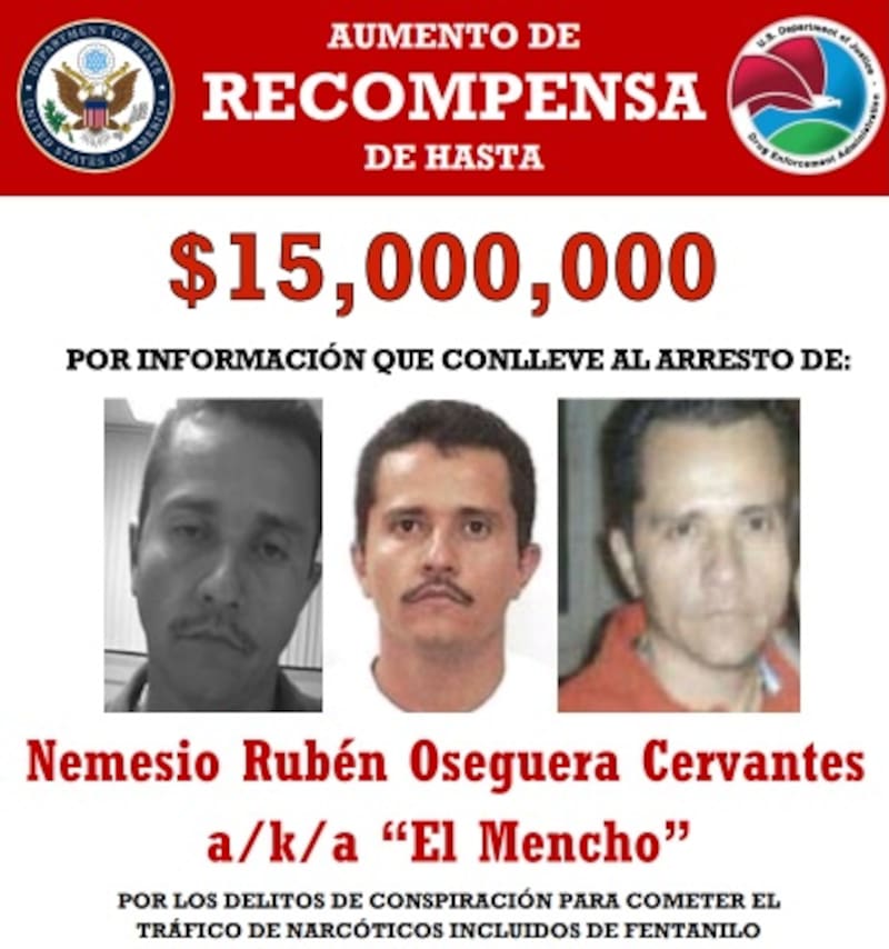 Sobre “El Mencho” existe una recompensa de hasta 15 millones de dólares por información sobre su arresto por parte del gobierno de Estados Unidos.