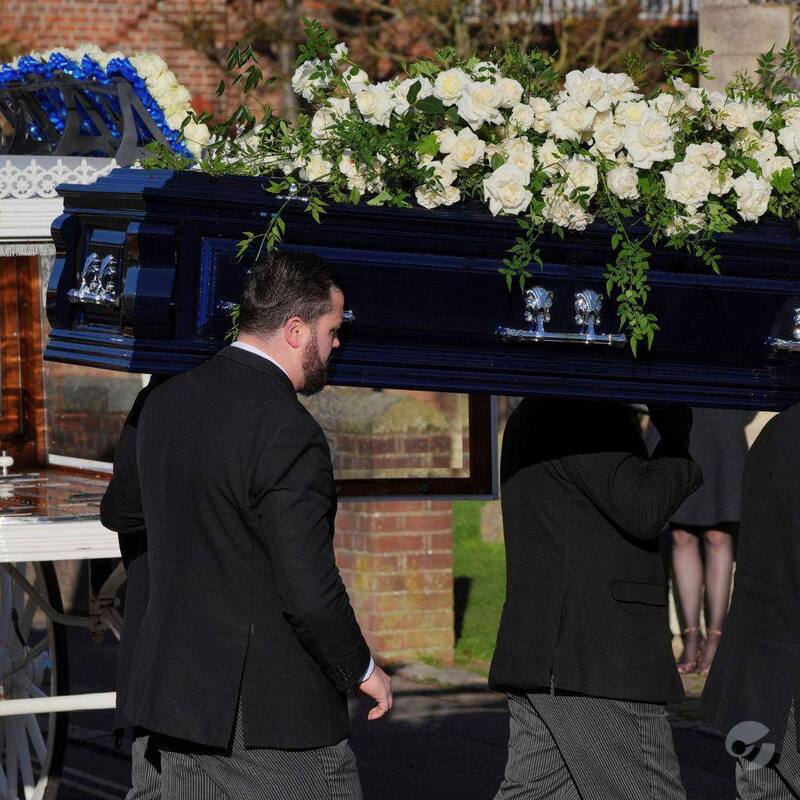 El féretro coronado con rosas blancas con el cuerpo de Payne fue trasladado a la iglesia en un carruaje con caballos en cuya paste posterior se colocó un tributo floral en el que se leía "son" (hijo) y otro tributo azul donde ponía "daddy" (papi).