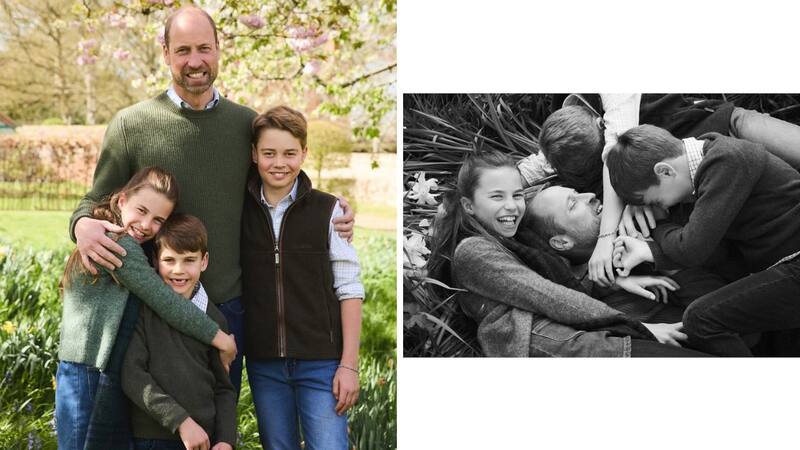 Las imágenes compartidas muestran muestra a sus hijos George, Charlotte y Louis abrazando a su padre, el Príncipe William, mientras todos sonríen a la cámara. La segunda es más espontánea, en la que se ve a la familia riendo mientras juegan sobre el césped.