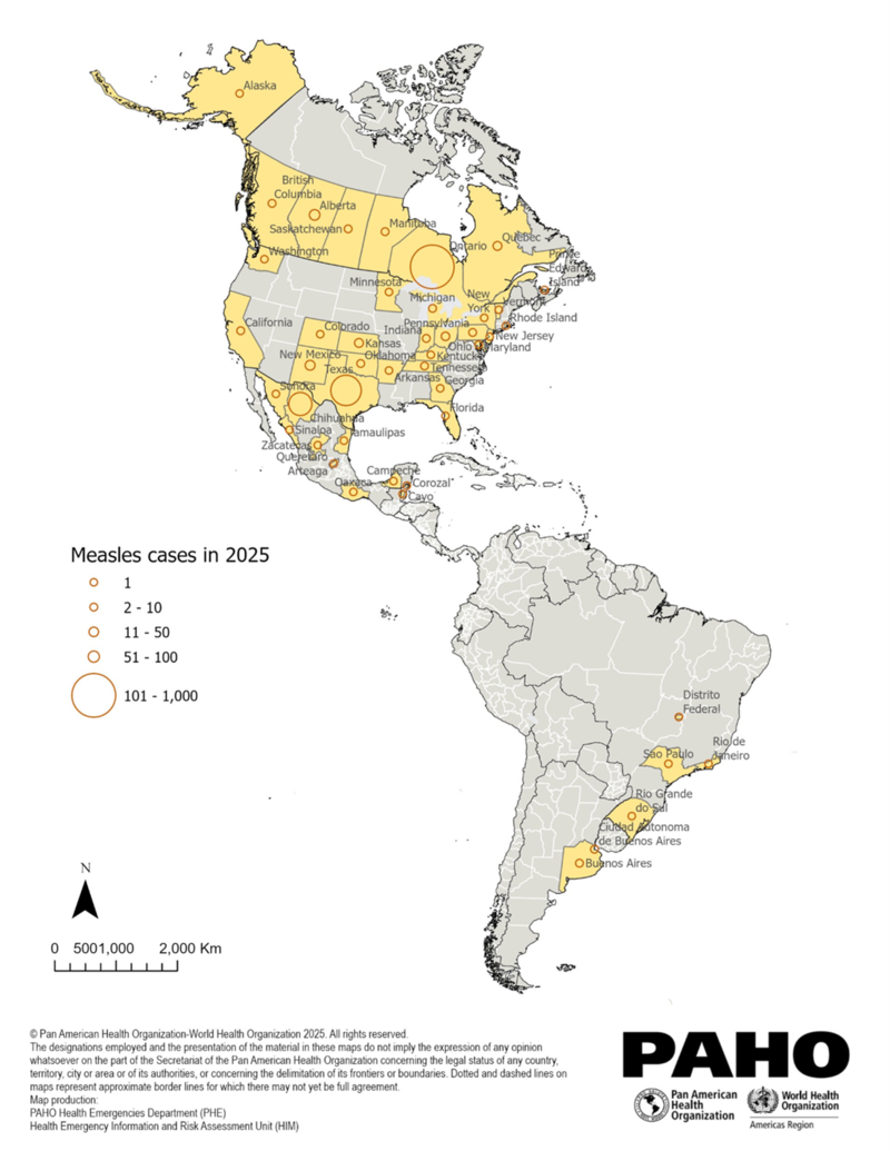 La Organización Mundial de la Salud, OMS, publicó los países de América Latina donde hay una epidemia de sarampión por casos confirmados