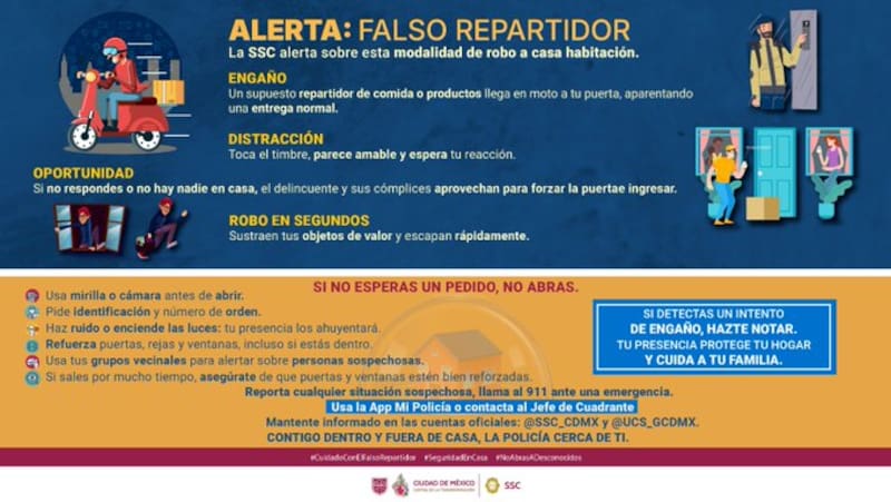 En los últimos meses, residentes de la Ciudad de México han recibido alertas por parte de la Secretaría de Seguridad Ciudadana de la Ciudad de México (SSC-CDMX) sobre una nueva modalidad de robo a casa habitación, denominada “falso repartidor”.