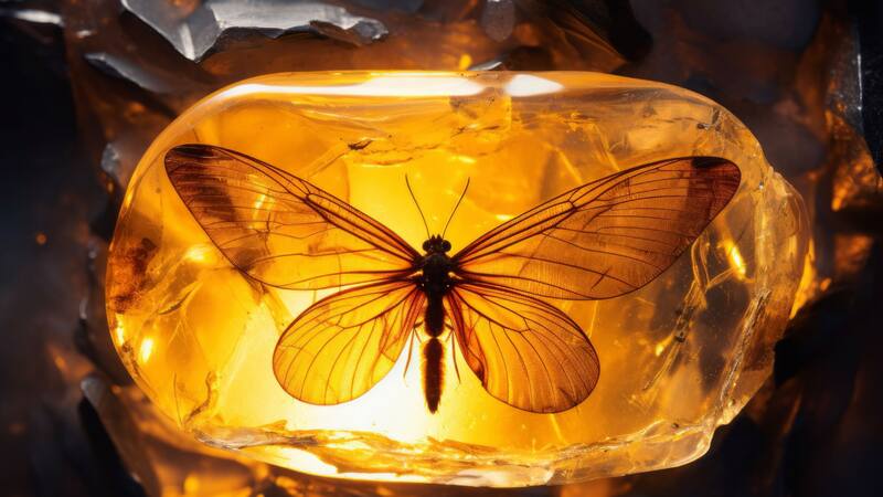 Esta resina fosilizada de origen vegetal, conocida como ámbar, contenía insectos, hongos y plantas preservados en su interior, que datan de hace millones de años.