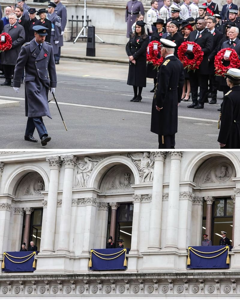 Carlos III depositó la primera guirnalda en nombre de todo el país ante el Cenotafio, seguido del príncipe William, heredero al trono británico, la princesa Ana, el primer ministro británico, el laborista Keir Starmer y la nueva líder del opositor Partido Conservador, Kemi Badenoch.