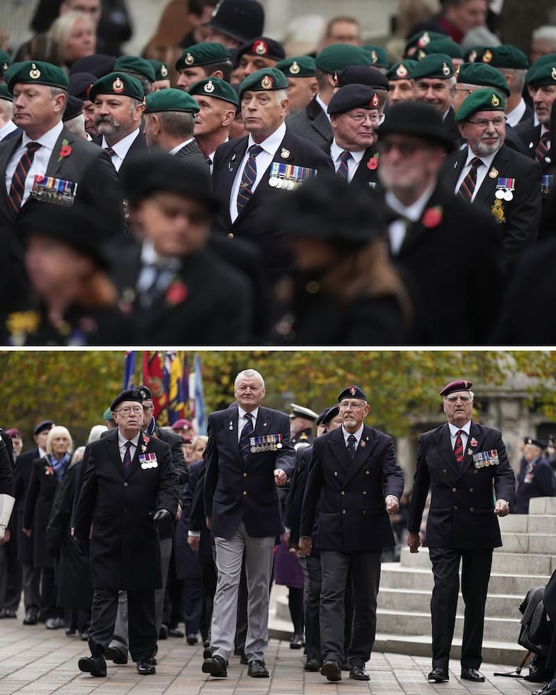 La avenida londinense se llenó de veteranos de guerra, algunos en sillas de ruedas y otros acompañados de sus mascotas, que marcharon al lado del monumento en un acto organizado por la Legión Británica.