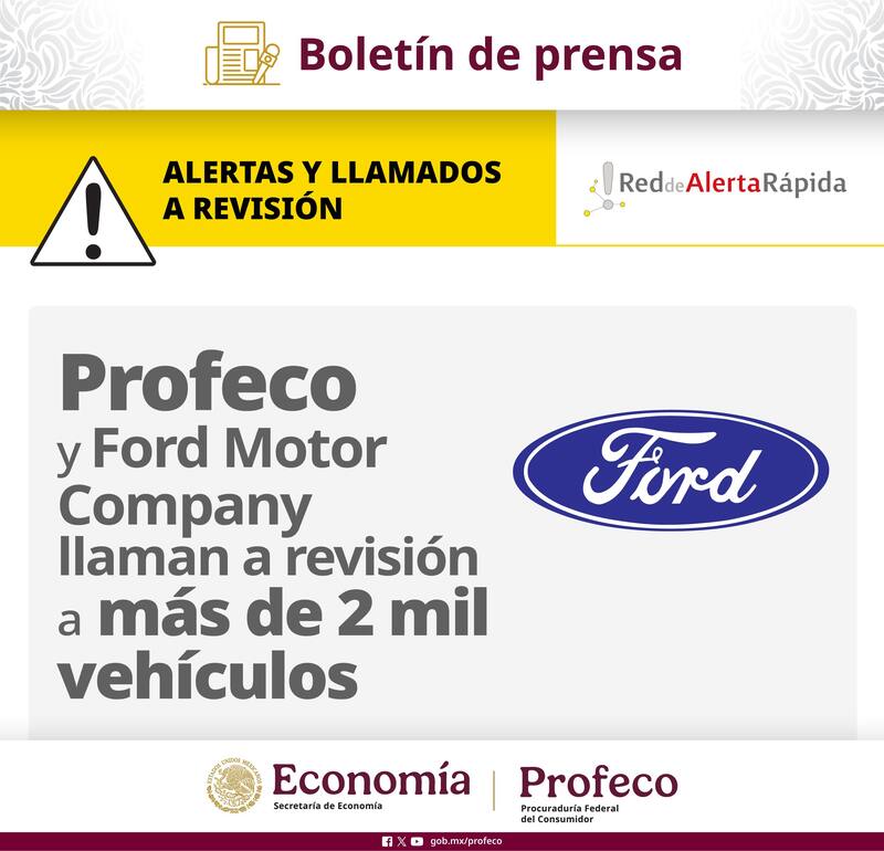 La Procuraduría Federal del Consumidor, Profeco, y la firmaFord Motor Company anunciaron un llamado a revisión para 2,068 vehículos en México. Mucha atención porque tu modelo de auto Ford podría estar en esta lista y necesita una revisión urgente.