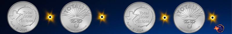 El diseño fue realizado con una onza de plata, donde se incluyó un mapa del estado de Texas, ciudad donde también se verá el Eclipse, con la frase "Total Solar Eclipse" grabada en el centro, y la fecha del 8 de abril de 2024 en la parte inferior.