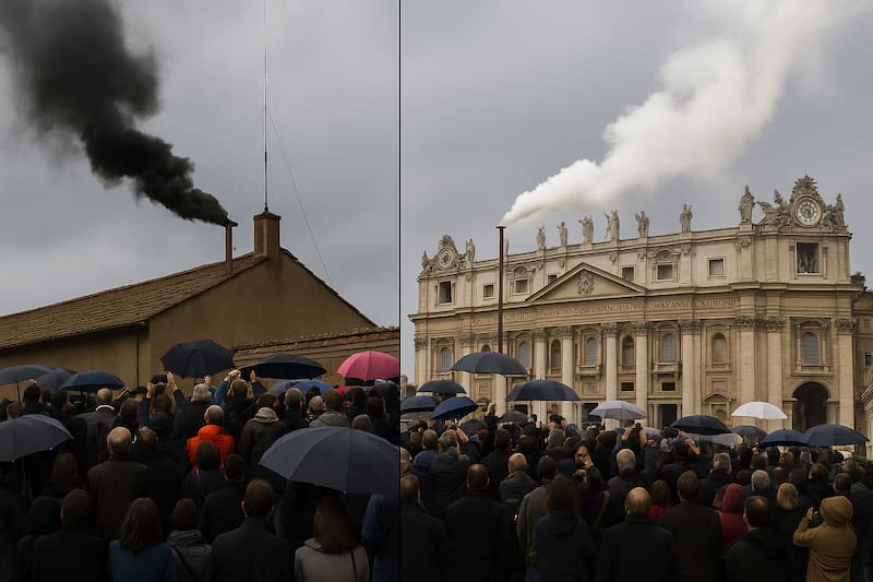 El cónclave para elegir al sucesor de Francisco comenzó este miércoles en el Vaticano, con el encierro de los 133 cardenales electores en la Capilla Sixtina, y la primera fumata, que fue negra, pues ningún purpurado logró los votos necesarios para ser papa, se hizo esperar.
