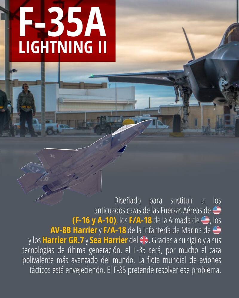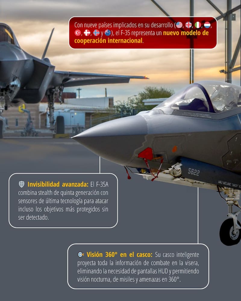 Según información oficial de la Embajada de Estados Unidos en México, el F-35 está pensado para dominar el combate aéreo del futuro: "Con su sigilo y tecnologías de última generación, será el caza polivalente más avanzado del mundo". La aeronave puede atacar sin ser detectada, tiene visión de 360° integrada en el casco del piloto y comparte datos en tiempo real con otras unidades en tierra, mar y aire.