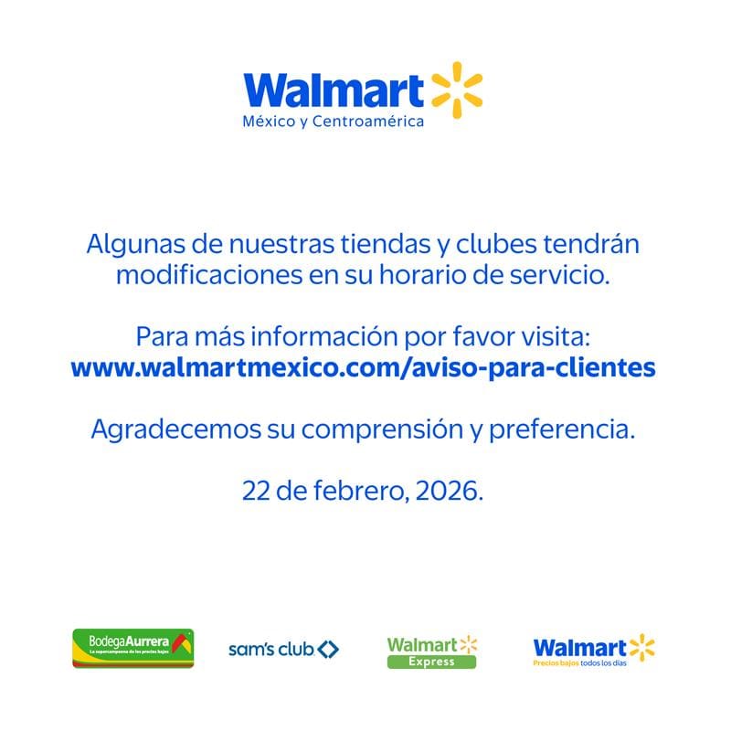 La compañía precisó que se evalúa “la situación particular de cada unidad e implementando los ajustes necesarios en la operación de nuestras tiendas”, lo que incluye posibles cambios de horario o cierres temporales en Sam’s Club, Bodega Aurrera y Walmart.