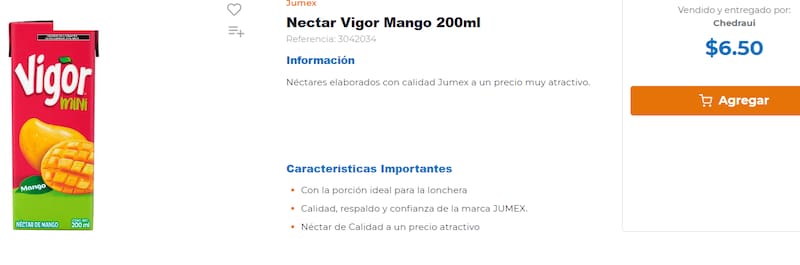 En efecto, este jugo de mango puede conseguirse a 6.50 pesos yse encuentra disponible en varios supermercados del país.