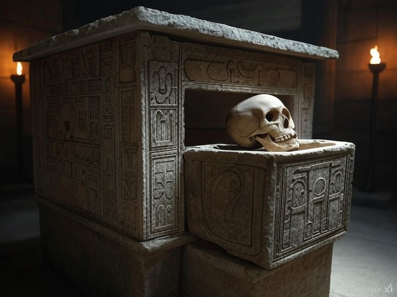 El arqueólogo Josef Keil descubrió en 1929 un sarcófago completamente lleno de agua en las ruinas del antaño magnífico Octágono, una construcción en la calle principal de Éfeso.